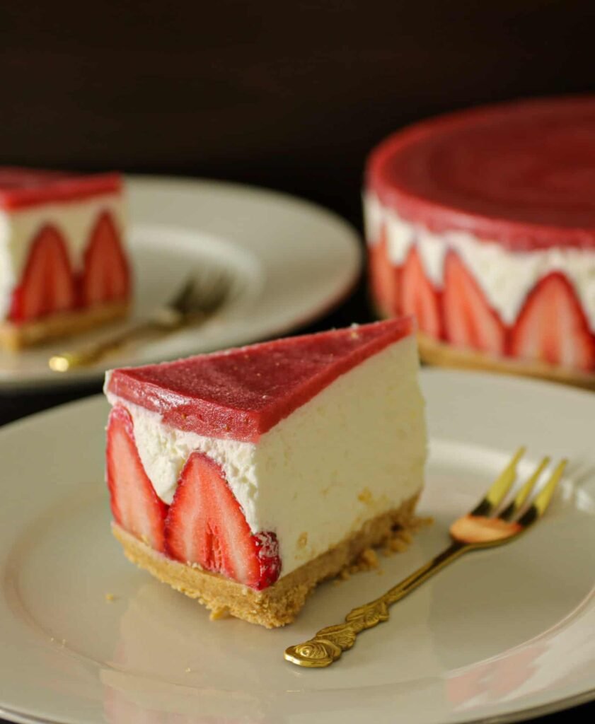2. No-Bake Strawberry Cheesecake (Eggless, Gelatin-Free)