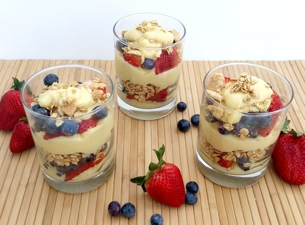 Colorful, creamy, and nutritious, this dessert is loved by both kids and adults. Customizable with seasonal fruits.