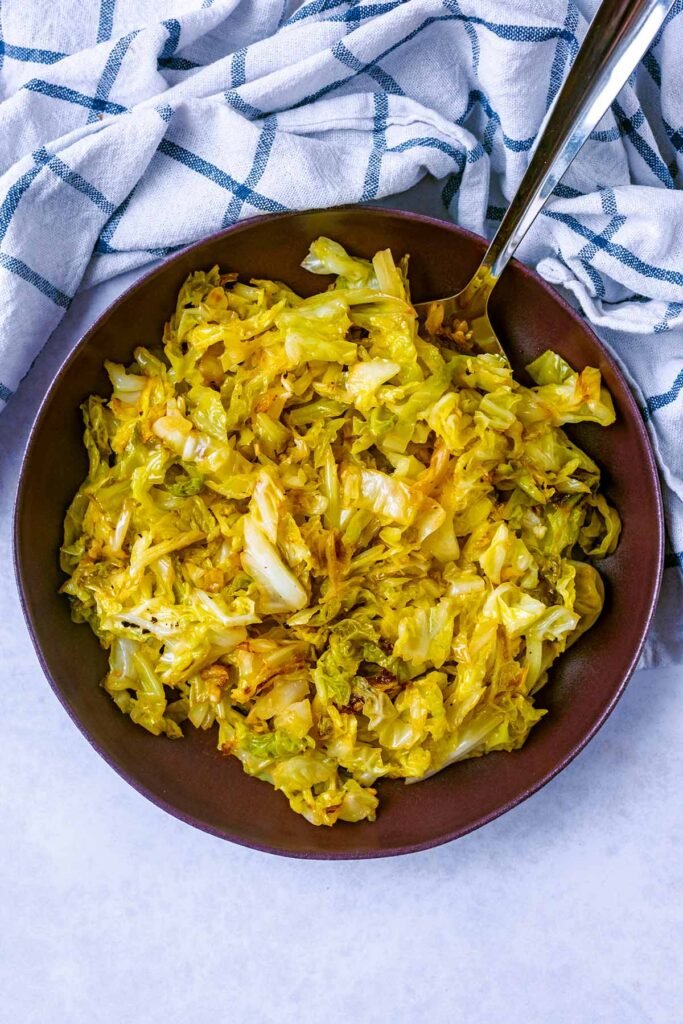 - Cover the pan and let the cabbage cook on low to medium heat for 8–10 minutes.