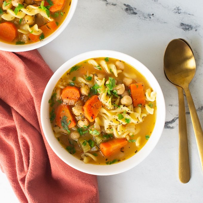Final touches elevate vegan chicken noodle soup from good to memorable.