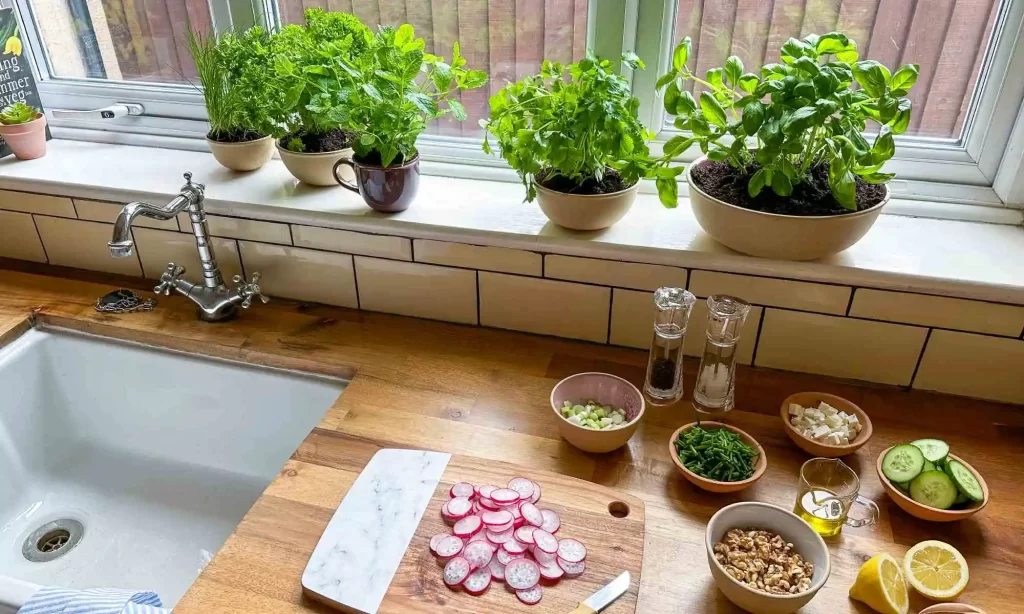 - Fresh herbs add visual appeal and natural fragrance to the kitchen.
