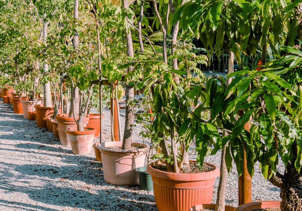 Ensuring successful pollination improves fruit quantity and quality for container-grown trees.