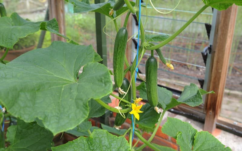 Vertical growth requires sturdy support to train cucumber vines effectively: