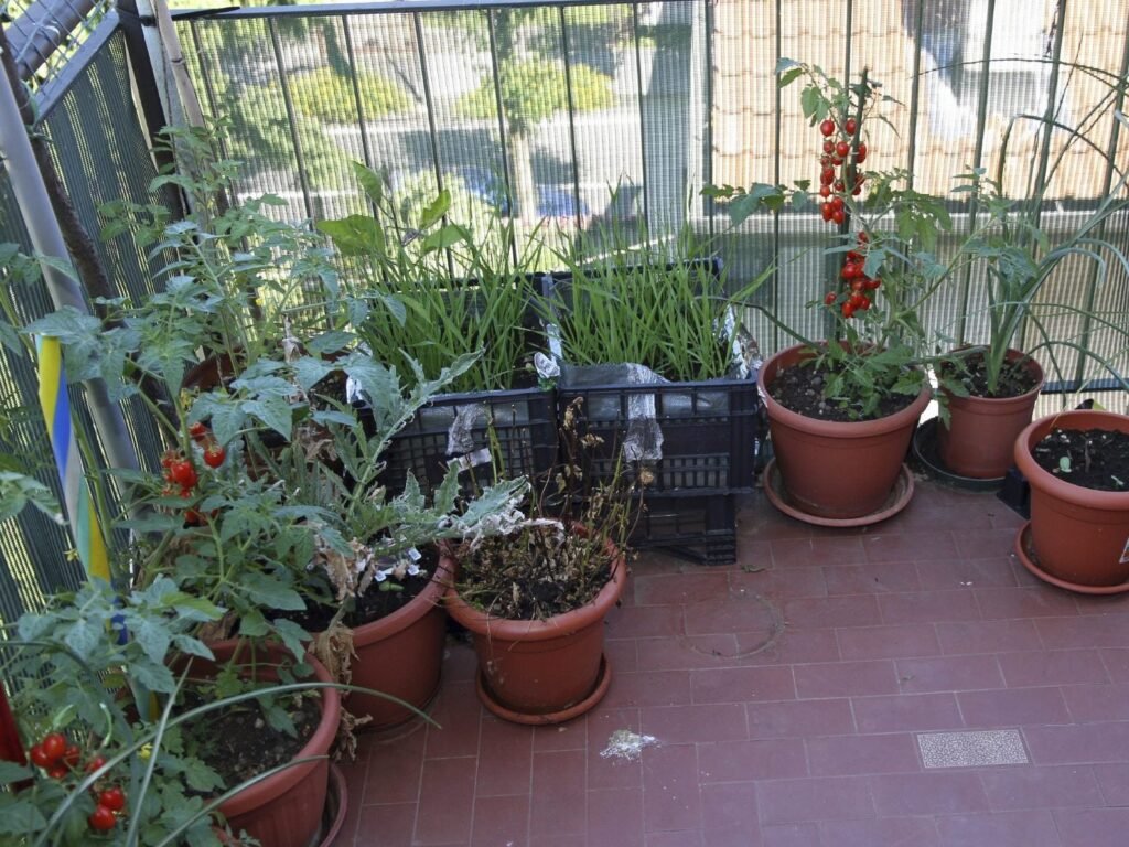 - Use wall-mounted planters, shelves, or hanging baskets to maximize space