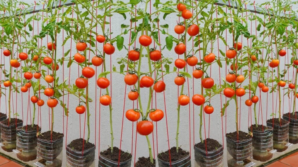 - Keep the soil consistently moist; tomatoes require regular watering, especially in a vertical setup.