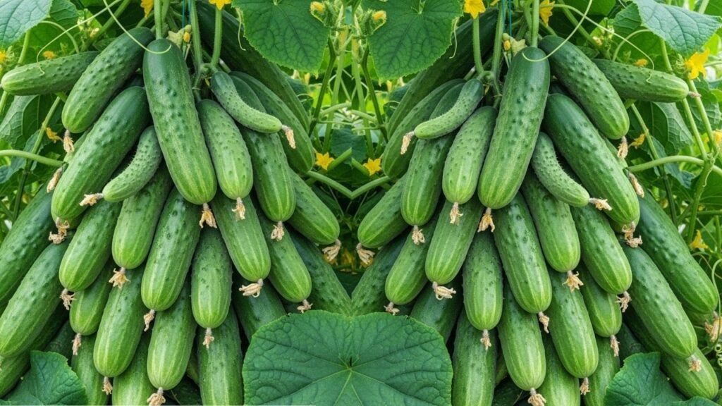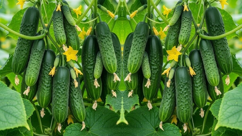 Proper pollination ensures healthy, fully developed cucumbers. Fruits typically mature 50–70 days after planting, depending on the variety.