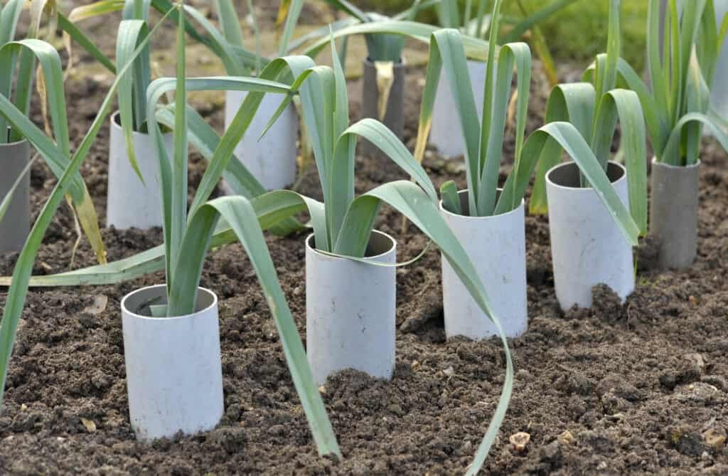 1. Gradually mound soil around the base of the leek stalks as they grow.
