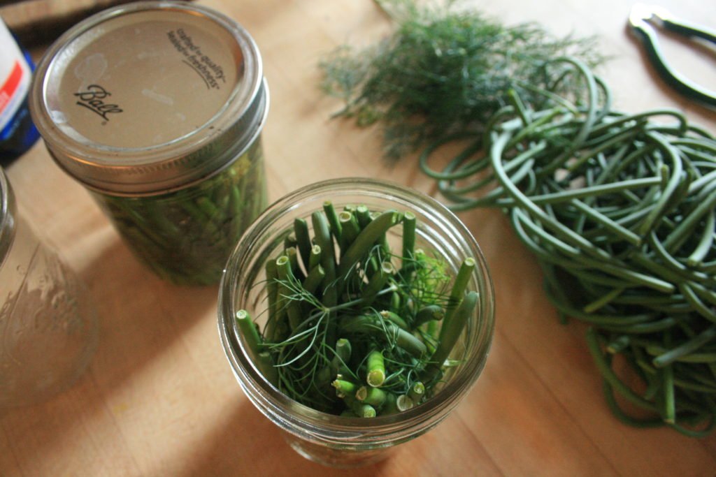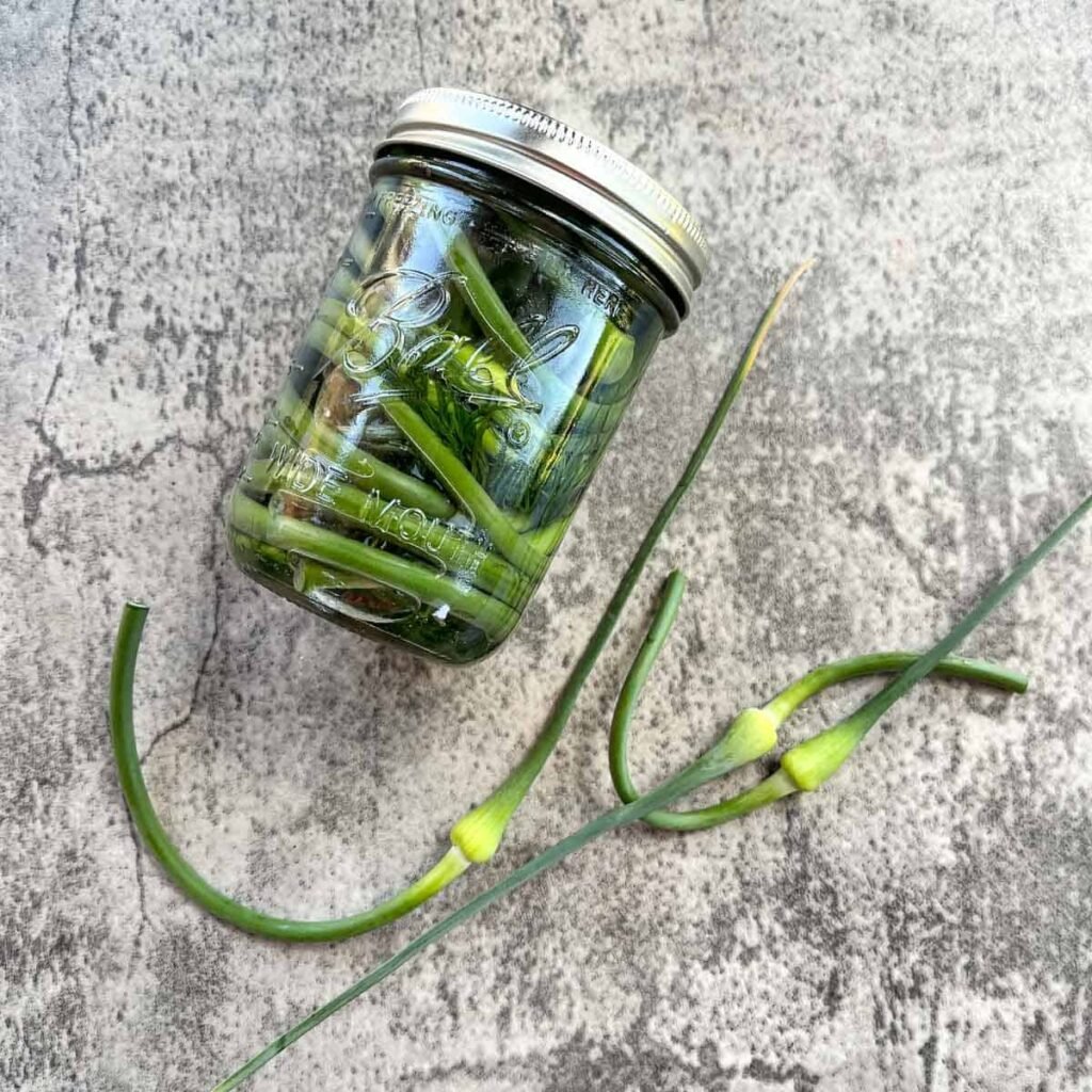 Pickling garlic scapes extends their shelf life and adds tangy, spicy flavor.